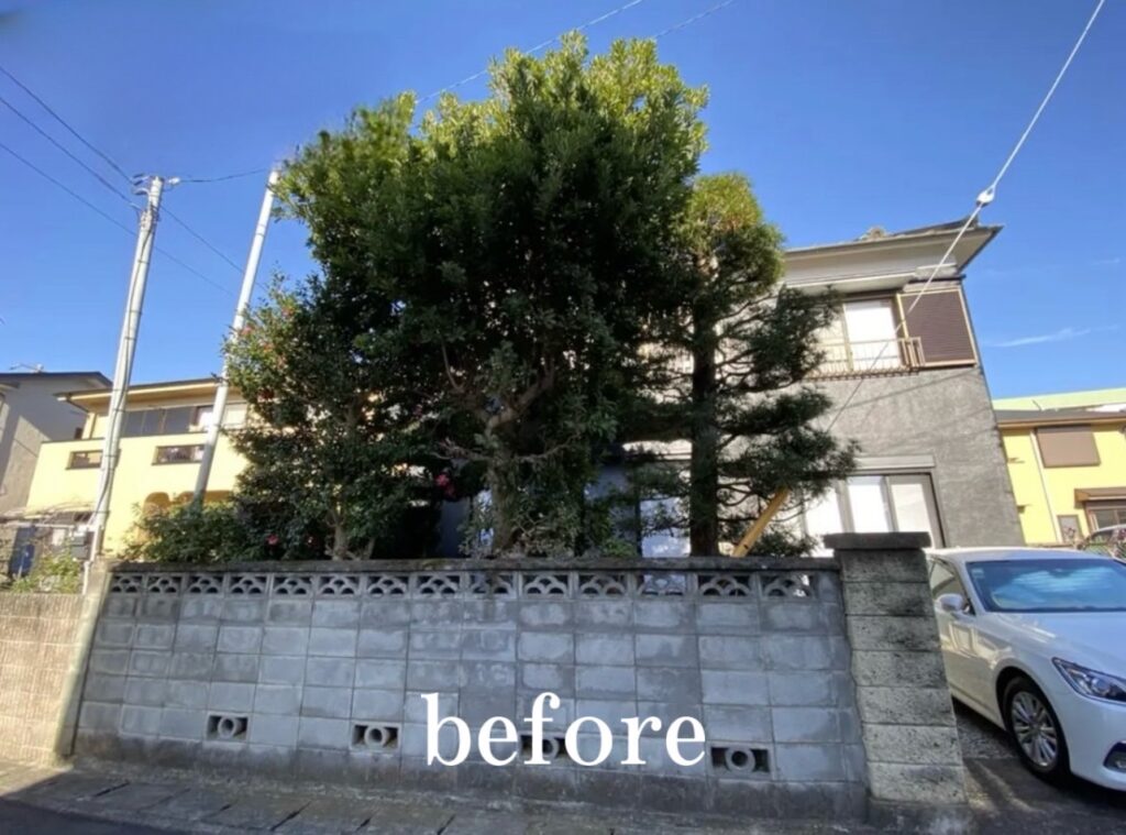 樹木を伐採したことで、通り沿いから見てもスッキリとした印象に。