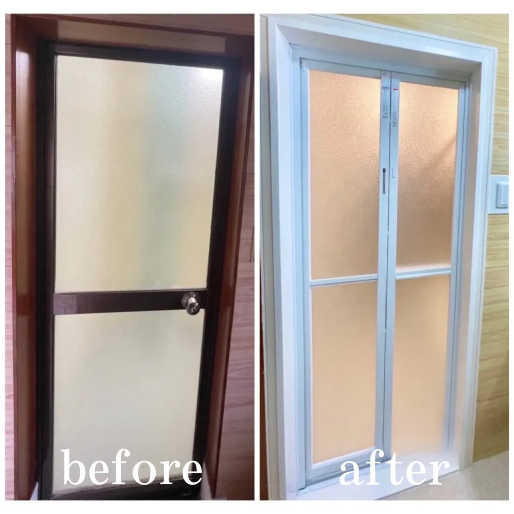 出入りのしづらい開き戸から折り戸にリフォーム。