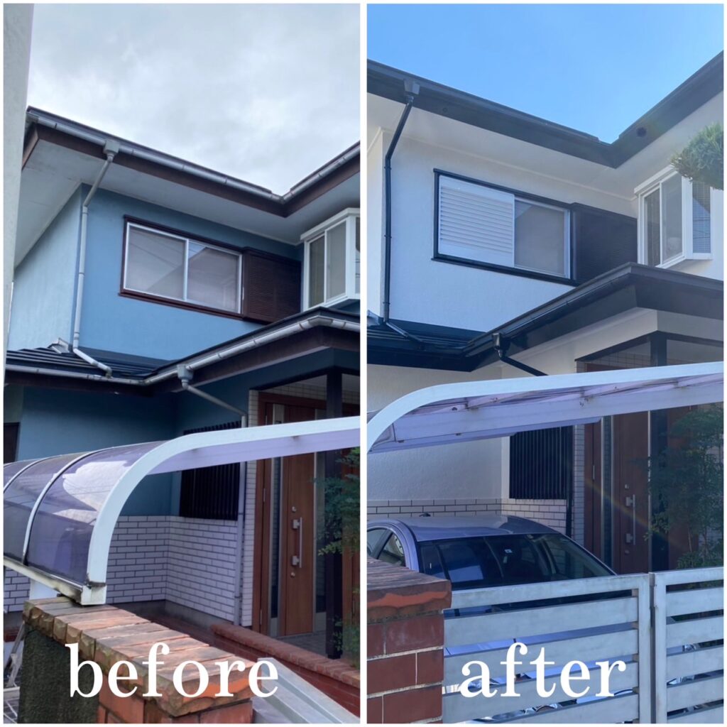 外壁を塗りなおすことによって、色褪せ古い印象だった外壁が明るく艶のあるお家に。