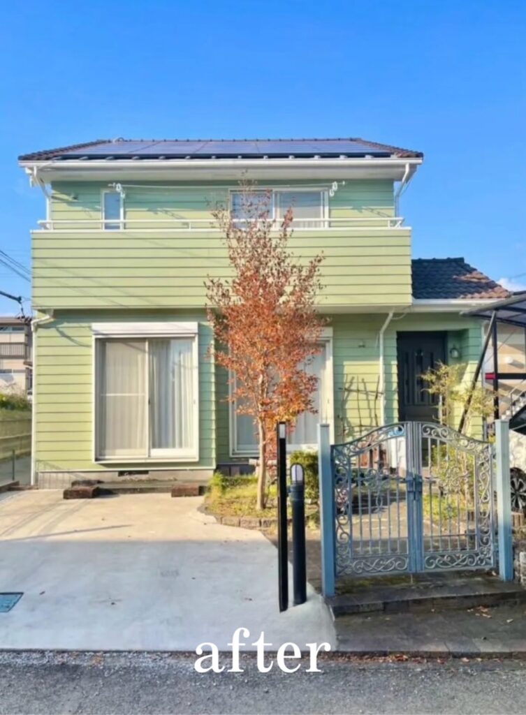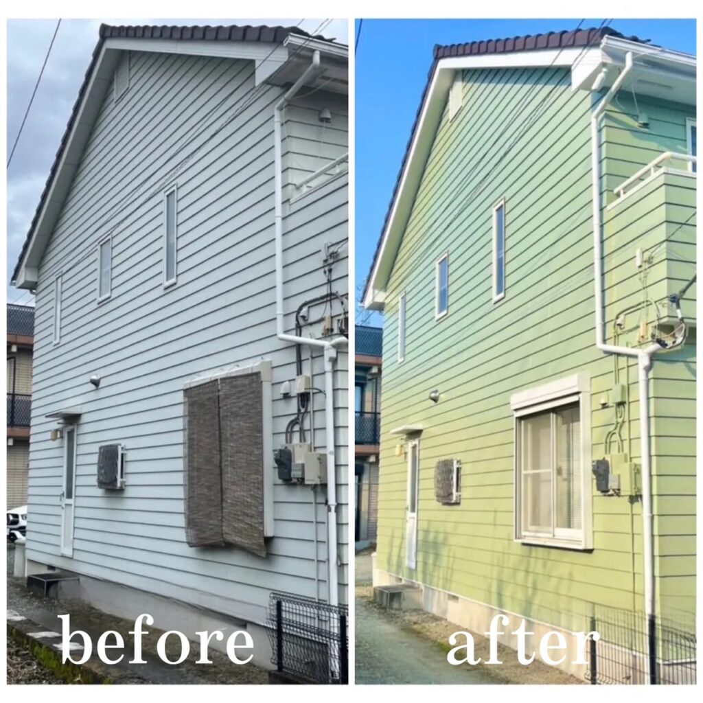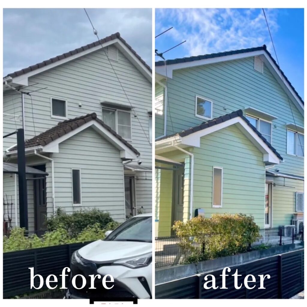 外壁を塗りなおすことによって、色褪せ古い印象だった外壁が明るく艶のあるお家に!