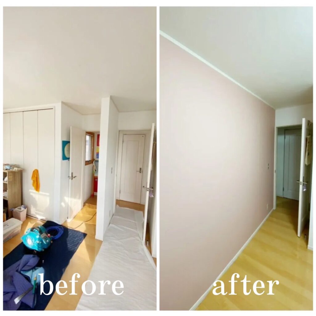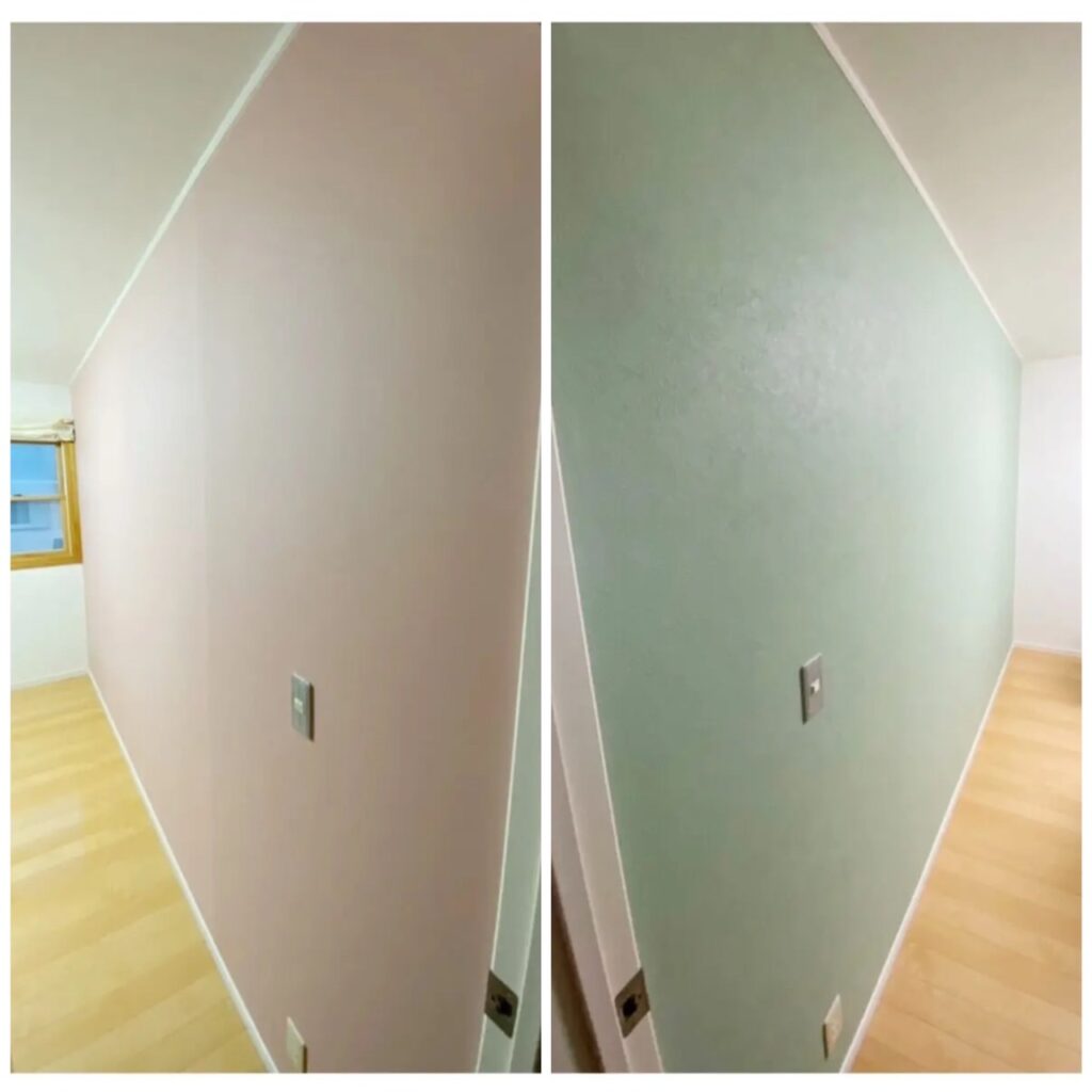 右のお部屋はピンクの壁紙、左のお部屋はグリーンの壁紙に♪可愛らしい子供部屋に仕上がりました。