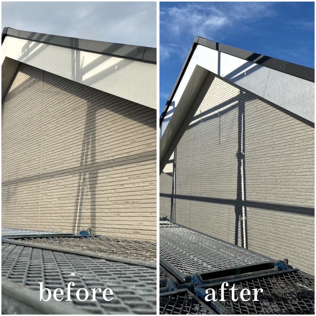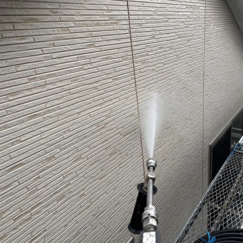 高圧洗浄をすることで、汚れや古い塗膜を取り除き新しく塗る塗料密着をよくします。