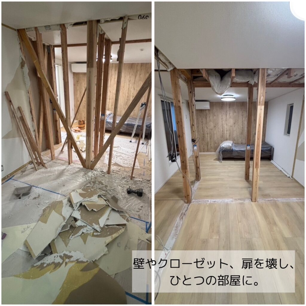 洋室2部屋を1部屋に間取り変更して欲しいとのご依頼でした。