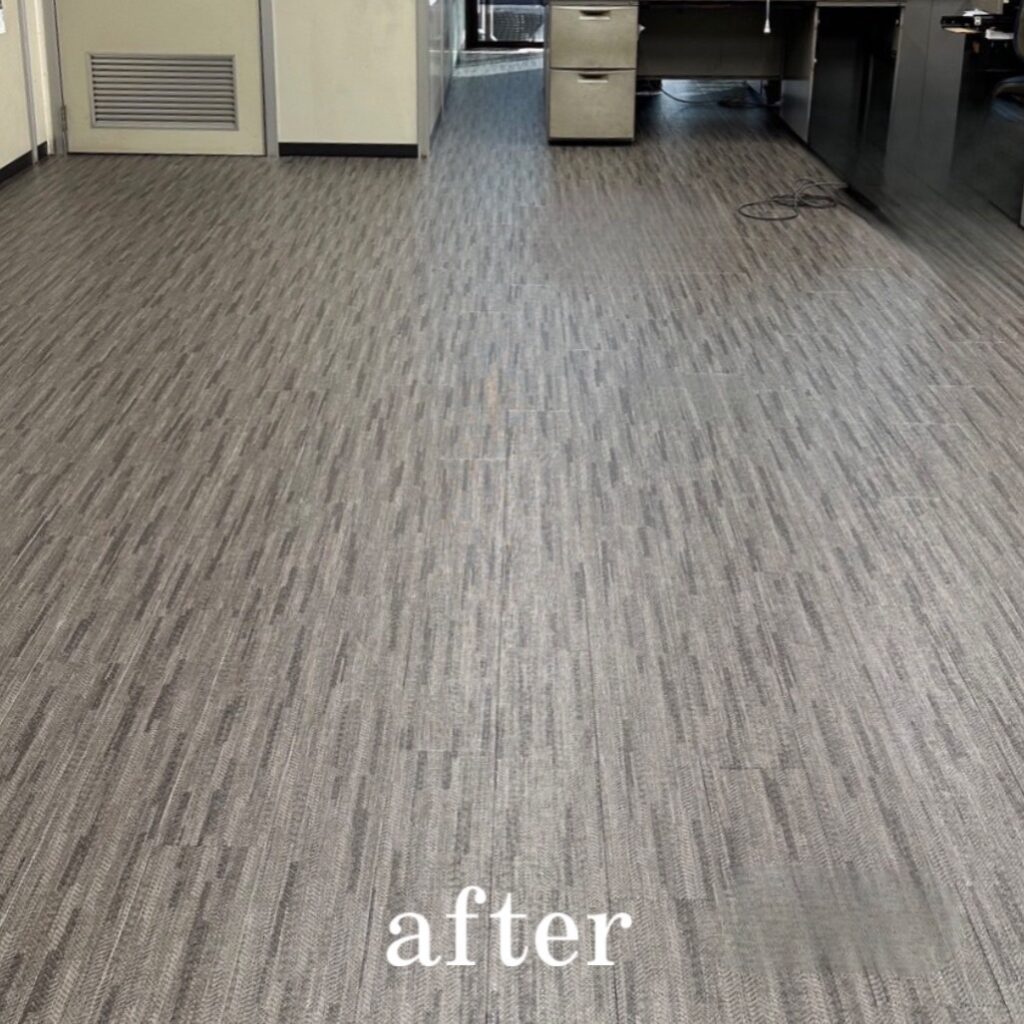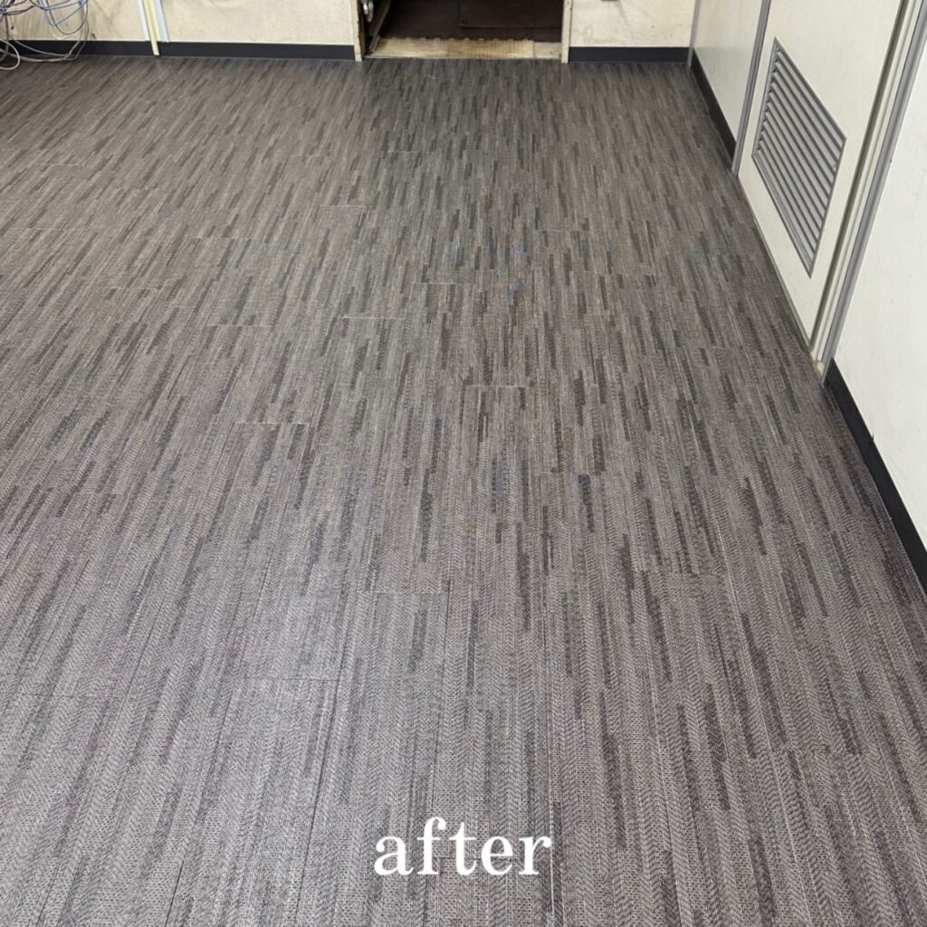 木目調のフロアタイルから黒を貴重としたフロアタイルへと張り替えました。